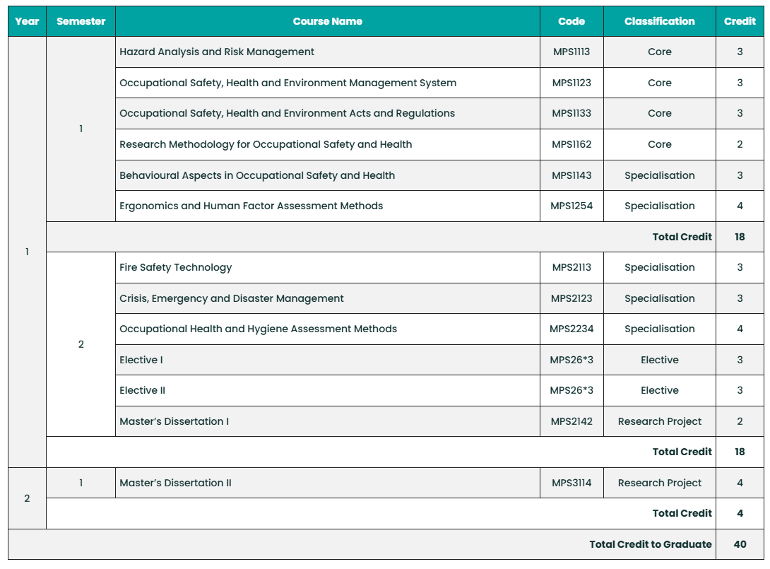 This program is customized to serve working professionals that decided to propel their professional careers to produce knowledgeable practitioners and leaders in occupational safety and health. Occupational Safety and Health professional practitioners are in demand because of the increasing focus on management in OSH in accordance with the law and regulatory requirements.